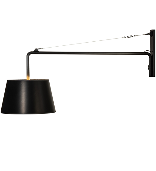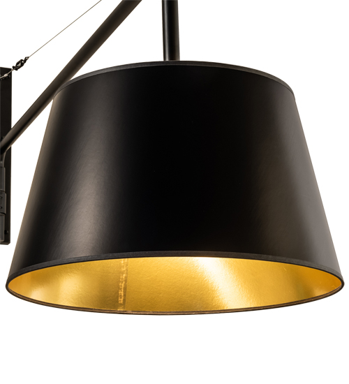 Designed with a round, tapered profile. This sophisticated wall sconce features a stunning Matte Black metal shade with a shimmering Gold Paper interior. This fixture is complemented with a Matte Black finish. Designed with a versatile Swing Arm, the fixture offers an overall height ranging from 30 to 75 inches and a width ranging from 20 to 58 inches as the cable can be adjusted easily in the field. Handcrafted by highly skilled artisans in our 180,000 square foot manufacturing facility in Yorkville, New York. Customize shade colors, metal finishes and sizes. UL and cUL listed for damp and dry locations.