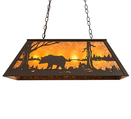 This pendant features an impressive Black Bear wandering by a woodland lake in the morning. This nature inspired oblong pendant offers Amber Mica Panels and is enhanced with a Timeless Bronze. finish. This stunning pendant is perfect for illuminating kitchen islands and tables, counters, bars and billiard tables in timber framed homes, lodges and other rustic settings. The overall height ranges from 18 to 46 inches as the chain length can be easily adjusted in the field. Handcrafted in our 180,000 square foot manufacturing facility in Yorkville, New York, located at the foothills of the Adirondack Mountains. Custom shade colors, metal finishes and fixture sizes available. UL and cUL listed for dry and damp locations.