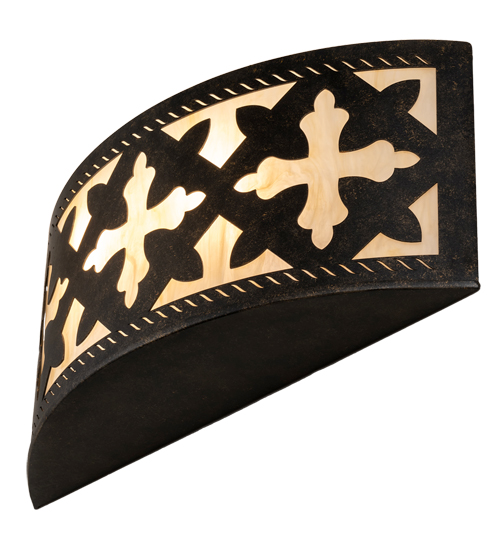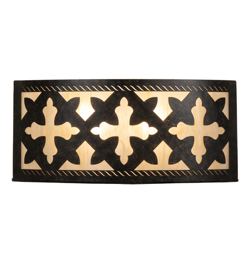 Offering a blend of timeless craftsmanship and classic design. Cardiff brings home unsurpassed quality and shapely appeal. The Sahara Taupe Idalight shade features stunning Gothic-styled Cross accents. Cardiff is enhanced with a dramatic design and frame offered in a Golden Bronze finish. The exquisite wall sconce beautifully illuminates hallways and living spaces or can be used as a vanity light in a fine bath in homes and restaurants. The Cardiff Wall Sconce is included in our American-made, American-designed, handcrafted Gothic Lighting Collection, and manufactured in Yorkville, NY. The fixture is UL and cUL listed for dry and damp locations.