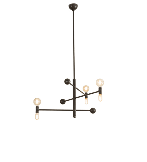 Inspired by out of this world constellation designs. An impressive industrial look comes to light. Rugged struts and large ballpoints are enhanced with a Black Fox Glossy finish. This modern stylish chandelier illuminates with three 6-Watt and three 2-Watt LEDs that provide energy savings and long life. The Alva Asta Chandelier is Domestically Produced in the USA at our Yorkville, NY manufacturing facility. Customize lamping styles, metal finishes and fixture sizes. UL and cUL listed for dry and damp locations.