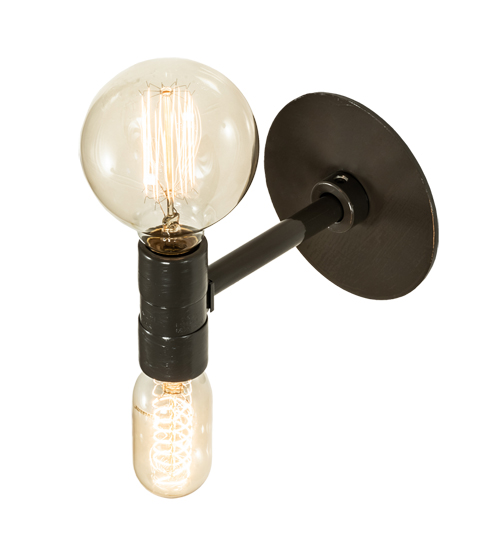 Eclectic minimalism blends modern LED technology with the traditional look of Edison bulbs. This two-light wall sconce offers a unique look for homes, lounges, restaurants and other residential and light commercial spaces. The hardware is finished in a Black Fox Glossy finish for a handsome look. 1 Round 6W LED lamp crowns the top of the fixture and a 2W LED lamp is placed below- both supplied by the customer. Custom made by highly skilled artisans in our 180,000 square foot manufacturing facility in Yorkville, New York. Metal finishes, lamping styles and sconce sizes can be customized to meet your needs. UL and cUL listed for dry and damp locations.