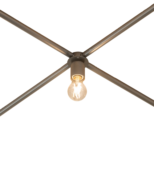 A striking crossbar scissor-like design brilliantly illuminates with minimalist styling and industrial flair. This massively elongated ceiling fixture is finished in Titanium Gold and illuminates with 11 LED lamps for beautiful ambient illumination, energy efficiency, and long life. The Tetromino Flushmount is featured in our American-made, American-designed, handmade Industrial Lighting Collection. It is UL and cUL listed for dry and damp locations and manufactured in Yorkville, New York. This fixture was Designed by Base4 of Cumming, Georgia and built for the Hyatt House Orlando in Orlando, Florida.