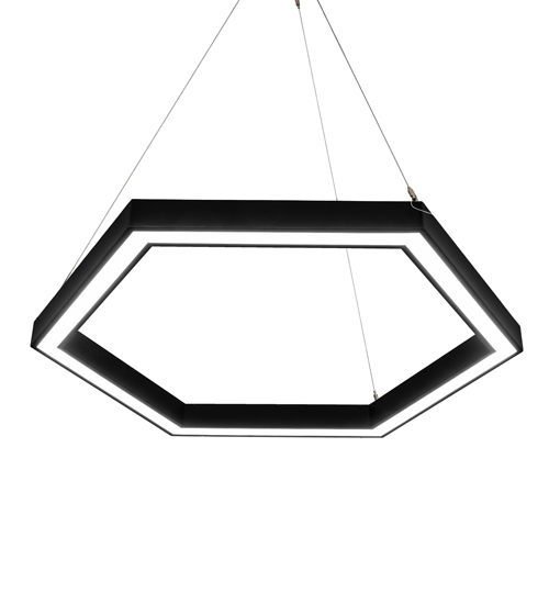 Anillo is a modern, sophisticated pendant featuring an extraordinary adjustable element of ambient light. Eliminating the power cord, our exclusive proprietary suspension system is engineered with low-voltage spacecraft cables for balance, precision, and a clean aesthetic. This hexagonal profile creates a stunning visual effect and breathtaking drama. This Flat Black finished solid ring reveals a Statuario Idalight diffuser. High-powered, integral LEDs deliver dimmable, robust illumination, energy savings, minimal maintenance, and long life. This eye-catching element emits a clean glow and enhances the ambiance of the surrounding space as it elevates the fixture's appeal in homes and hotels from Montpelier, Vermont, to Portland, Oregon, to Seattle, Washington. The overall height ranges from 24 to 48 inches, as the suspension cable can be easily adjusted in the field to meet your lighting requirements. The Anillo Hexagon Pendant is included in our American-made, American-designed, handmade Modern Lighting Collection and manufactured in Yorkville, New York.