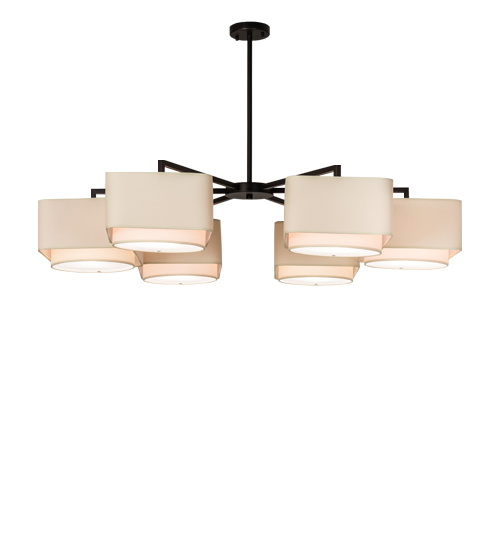 Inspired by out-of-this-world constellation designs... An impressive architectural look comes to light with six rugged arms enhanced with a Bronze finish. This uniquely configured chandelier illuminates six elements featuring Cream Textrene outer shades with Natural Linen fabric inner shades and Statuario Idalight bottom diffusers. This jaw-dropping, highly functional, and versatile chandelier is the perfect lighting fixture for architects, designers, and other professionals in fine homes and offices in Manhattan, New York, Washington D.C., and Los Angeles, California. The Otis Chandelier is included in our American-designed, handmade Modern Lighting Collection. UL and cUL listed for dry and damp locations; however, we do not recommend placing it in spaces that experience a large amount of moisture due to the fabric shades. Custom Made. Call for pricing and lead time. This chandelier is featured in The Bradley Hotel in Fort Wayne, Indiana.