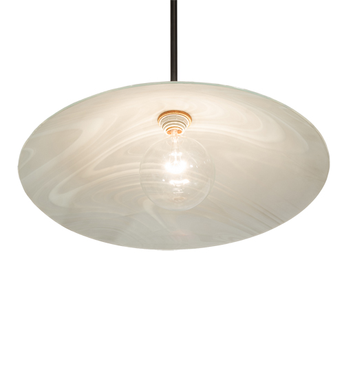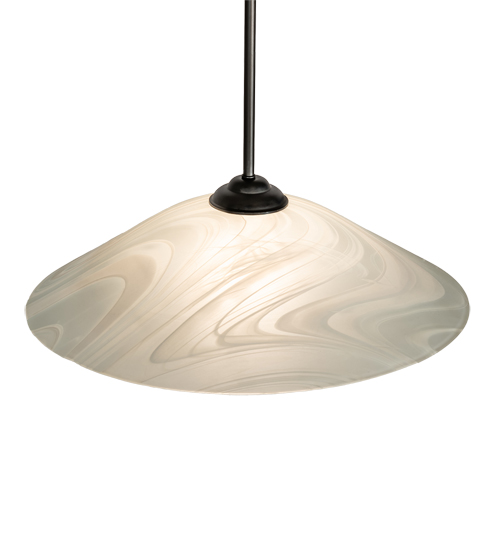 Cool and contemporary. With the brushstroke artistry of a fine painter, the Metro Pendant features Blanco Swirl art glass in a dome shaped profile. The fixture is enhanced with Brass hardware finished in Craftsman Brown. Made to Order in our 180,000 square foot manufacturing facility in Yorkville, New York. Shade colors, metal finishes and pendant sizes can be customized to your needs. UL and cUL listed for dry and damp locations.