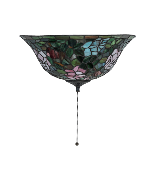 The most beloved of all floral beauties. The Rosebush 10 inches in height in the field. UL and cUL listed for construction. The delicate domed stained glass shade is created using the famous Meyda Tiffany copperfoil dry locations. Fan not included. is beautifully represented in this stunning light fixture. The shade can be adjusted from 6.5 to on a maze of Garden Green leaves. The stunning shade is paired with a Mahogany Bronze finish to create a fan reproduction of a Tiffany Studio Classic. Petal Pink, Romantic Red and Beautiful Blue art glass Roses ramble