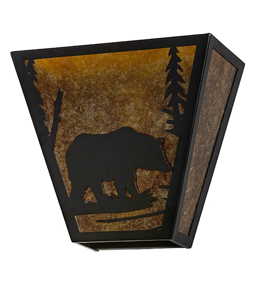 Drawing inspiration from wildlife and the beauty of nature, this stunning fixture depicts a Bear walking through the woodlands as the morning sun rises in the background.Warm ambient light is evoked through stunning Amber Mica panels complemented with a frame and hardware featured in a Black finish. Handcrafted by Meyda artisans in our Yorkville, NY facility. Custom designs, styles and sizes available. Energy efficient lamping options.