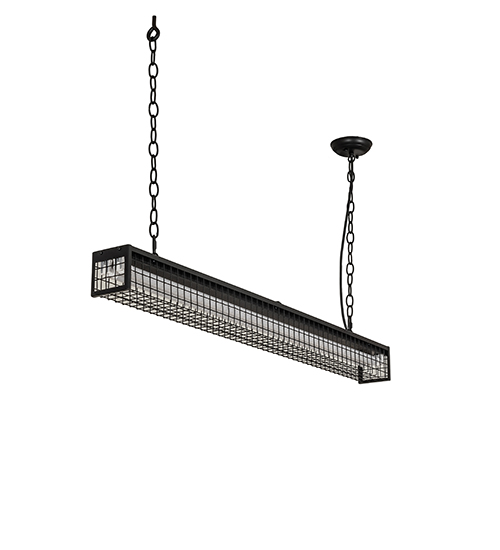 Discover a unique decorative look and lighting design with this dramatic caged frame and exposed fluorescent lamping configuration displayed from within. The solid hardware, frame and grill are featured in a handsome Flat Black finish. The oblong pendant is ideal for illuminating islands, counters, bars, and billiard and conference tables. The overall height ranges from 9 to 103 inches as the chain length can be easily adjusted in the field. The Paloma Golpe Oblong Pendant is featured in our American Made, American designed, handcrafted Industrial Lighting Collection. Manufactured in Yorkville, New York. UL and cUL listed for dry and damp locations.