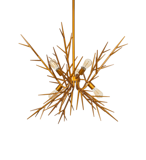 Inspired by the French fairy tale called The Golden Branch, this unique chandelier will serve as the perfect centerpiece for transforming a home into your castle. Brilliant Brass-finished Twig and Branch-styled accents adorn this elaborate, elegant lighting fixture. 5 Edison-styled lamps provide beautiful ambient illumination for residential and hospitality settings. The d'Aulnoy Chandelier is included in our American-designed, handcrafted Nature Inspired Collection. UL and cUL listed for dry and damp locations. Custom made. Call for pricing and lead time.