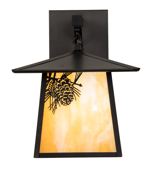 Delicately etched of Solid Brass, Winter Pinecones and Pine Needles glow on a stunning Beige Ripple Glass background. Rustic charm comes alive with soft ambient light from this Nature Inspired wall fixture which is enhanced with a Craftsman Brown finish. Ideal for beautiful exterior and interior lighting applications. This handsome wall fixture is perfect for illuminating timber homes, modern farmhouses and other settings. The Stillwater Winter Pine Wall Sconce is featured in our American made, American designed handcrafted Craftsman Signature Lighting Collection. Manufactured in Yorkville, New York. UL and cUL listed for dry, damp and wet locations.