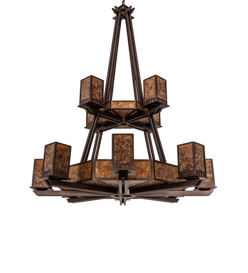 A handsome chandelier featuring two stunning central diffuser hubs flanked by 12 matching lanterns in Amber Mica. This geometric-styled fixture is enhanced with a warm Mahogany Bronze finish. The overall height ranges from 78 to 166 inches, as the chain can be easily adjusted in the field to accommodate your various lighting applications. The Avondale Two Tier Chandelier is included in our American-made, American-designed, handcrafted Craftsman Collection and manufactured in Yorkville, New York. UL and cUL listed for dry and damp locations.