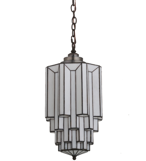 Designed with the glitz and glam of old fashioned movie theaters, Paramount evokes a romantic allusion with a dramatic lighting design that features art glass created using our famous copperfoil construction. Multi layers and levels of enclosed glass cylinders create an extraordinary dimensional effect. A three step hub, featured in an Antique Iron Gate finish, crowns the shade. Handcrafted in the USA, this fixture is offered in custom sizes, styles and colors. UL and cUL listed for dry and damp locations.