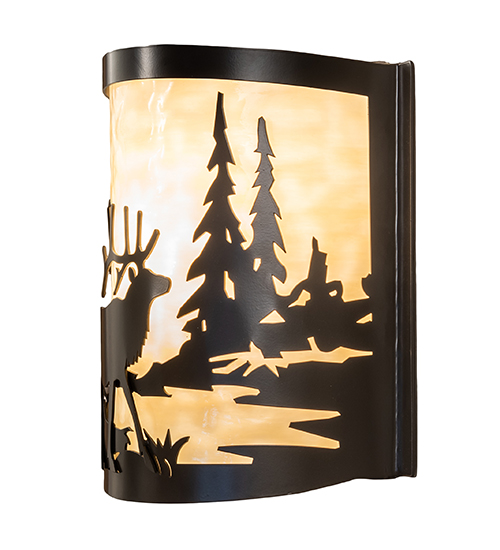 The iconic Elk wanders by a woodland lake in the beautiful afternoon sun. This curvaceous, nature-inspired wall sconce features a Beige Art Glass lens and is enhanced with an Elk design in a Timeless Bronze finish. It is ideal for installation on the walls of dining areas and living spaces in residential and hospitality locations, including timber frame homes and lodges from the Adirondack Mountains in New York to the Smokey Mountains in Tennessee. The Elk at Lake Wall Sconce is included in our American-designed, handcrafted Wildlife Collection. UL and CUL listed for dry and damp locations.