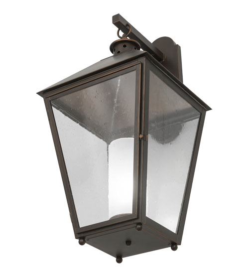 Like something out of a Dickensian village, European charm comes to light in distinctive style. Enjoy the time-honored look of Stafford, an authentic lantern design with classic styling and handcrafted construction. Ideal for indoor and outdoor applications, this classic lantern features Clear Seeded Glass, which is complemented with a frame and hardware featured in an Oil Rubbed Bronze finish. The sconce is available in custom colors, designs, sizes and dimmable energy efficient lamping options. The wall fixture is UL and cUL listed for wet and dry locations.