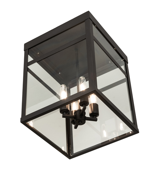 Rendering a stunning architectural look. This structural cube-like design features a sophisticated Wrought Iron metal frame and decorative accents. The ceiling fixture renders a Clear Float Glass lens that reveals 4 Edison-styled lamps for beautiful ambient illumination. The Quadrato 4 Light Semi-Flushmount is included in our American-made, American-designed, handcrafted Transitional Collection and manufactured in Yorkville, New York. UL and cUL listed for dry and damp locations.