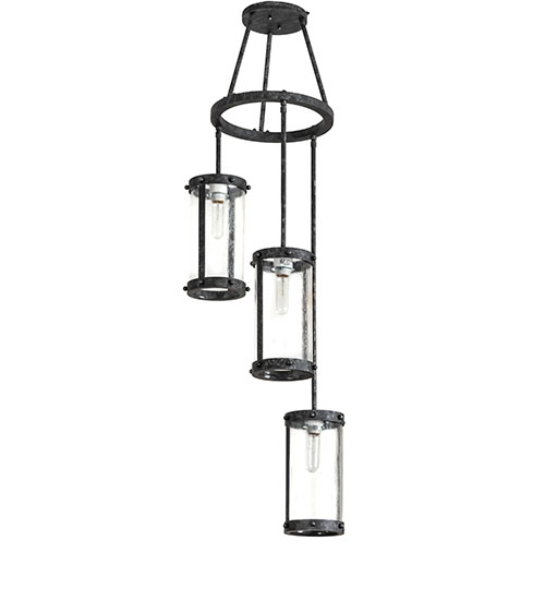 This stunning Cartier chandelier features an eye-catching transitional look. Handsome Rainstone Idalight shades are aligned in a staggered formation, suspended from a decorative ring and a canopy while providing light at various levels. All hardware is hand-finished in Gunmetal while an inviting glow evokes from three decorative cylinders. Ideal for illuminating entryways, lobbies, foyers, ballrooms, and other residential, hospitality, and commercial spaces. The Cartier Cascading Chandelier is offered in our American-made, American-designed, handcrafted Transitional Lighting Collection. Manufactured in Yorkville, NY. UL and cUL listed for dry and damp locations.
