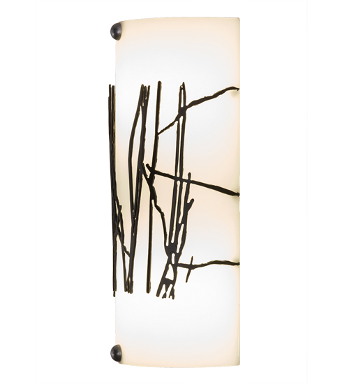An abstract interpretation of branch bundles on a clean Statuario Idalight cylinder with hardware and decorative accents finished in Timeless Bronze. This fixture is ideal as a wall sconce for any room. Created by highly skilled artisans in the USA, this fixture is available in custom sizes, styles, colors and dimmable energy efficient lamping options. UL and cUL listed for dry and damp locations.