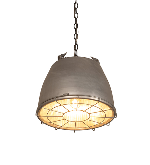 A dramatically styled constructed pendant. The dome-shaped shade features a Clear Fluted Glass lens with aluminum hardware. The pendant features a Metal Cage to protect the diffuser and create a unique industrial aesthetic. The overall height ranges from 17 to 40 inches as the chain length can be easily adjusted in the field to accommodate your lighting needs. The energy efficient LED pendant is ideal for illuminating retail & commercial spaces. Overall height ranges from 17 to 40 inches as chain length can be easily adjusted in the field. The Gravity Pendant is featured in our American Made, American designed, handcrafted Industrial Lighting Collection. Manufactured in Yorkville, New York. UL and cUL listed for dry and damp locations.