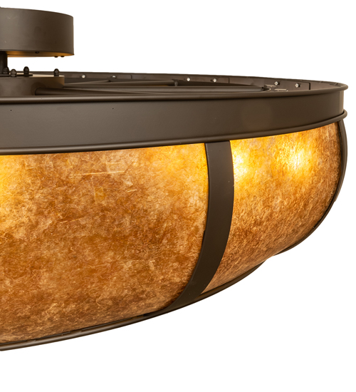 Evocative of the Craftsman period, this handsome custom fan integrated lighting fixture adds warmth and authentic appeal to interior spaces while creating a visually pleasing experience. A stunning Amber Mica shade is complemented with Oil Rubbed Bronze finished hardware as the fan spins quietly in its center. In summer, the fan pushes down a windchill that circulates to keep the space cool and comfortable. In winter, the fan is reversed to pull the room air up towards the ceiling and force the warm air back down into your space. The Prime Dome Chandel-Air is featured in our American made, American designed handcrafted Chandel-Air Collection. Manufactured in Yorkville, New York. UL and cUL listed for dry and damp locations.