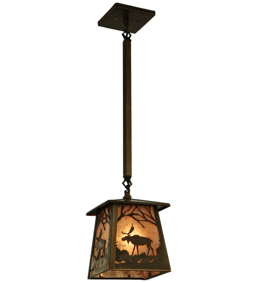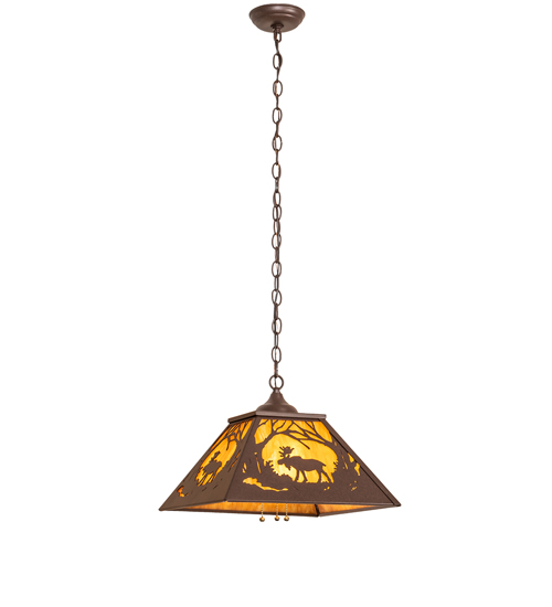 Bring natural beauty into your home with this majestic Moose meandering through the woodlands. This wildlife-adorned ceiling fixture is artistically designed with a stunning Ambra Siena Idalight lens and a Cafe Noir finish. This handsome fixture will warm your home and your heart. Inspired by Moose that roam popular parks, including the Isle Royale National Park in Michigan, Rocky Mountain National Park in Colorado, and Glacier National Park in Montana. Perfect for illuminating hallways, dining areas, and spaces in residential, hospitality, and commercial settings. The overall height ranges from 15 to 44 inches, as the chain length can be easily adjusted in the field to accommodate your specific lighting application needs. The Moose at Dawn Pendant is featured in our American-made, American-designed, handmade Wildlife Lighting Collection and manufactured in the USA. UL and cUL listed for dry and damp locations.