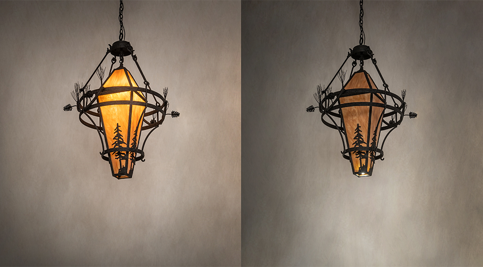 Offered in a uniquely designed profile... This extraordinary lighting fixture features Pine Trees, Pinecones with Pine Needle and Branch metal accents that complement a stunning Amber Mica shade. The elongated pendant is enhanced with a striking Black Cracked Ice finish. The overall height ranges from 53 to 123 inches, as the chain easily adjusts in the field. The Lone Pine Pendant is included in our American-made, American-designed, handcrafted Nature Inspired Lighting Collection. Manufactured in Yorkville, New York. UL and cUL listed for dry and damp locations.