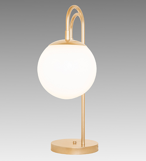 A unique two-light table lamp for reading spaces including desktops, library tabletops, reception areas, work stations and other settings... Bold, eye-catching appeal integrates classic contoured White Opal Glass orbs which are complemented with a Champagne Metallic finish. The Bola Deux Table Lamp is included in our American made, American designed, handcrafted Modern Lighting Collection.UL & cUL listed for dry locations.