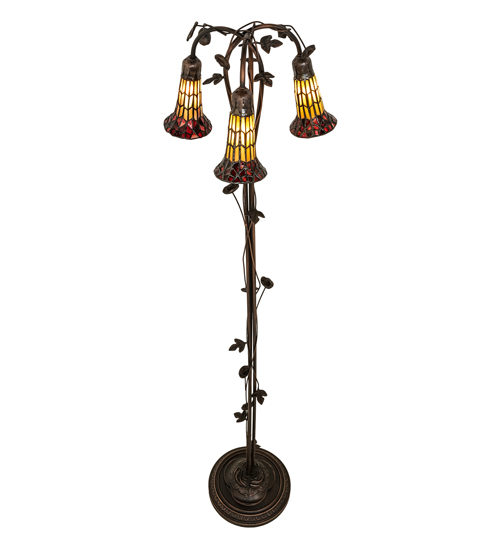 Inspired by the popular Tiffany design from the early 1900s... This floor lamp offers an attractive, delicate design featuring three stunning Honey and Red art glass shades created with the famous Meyda Tiffany copperfoil construction technique. The Pond Lily shades are embraced by an elegant Mahogany Bronze finished floor base. The Pond Lily Floor Lamp is featured in our American designed, handcrafted Stained Glass Lighting Collection. UL and cUL listed for dry locations. Each shade is a unique work of art with color variations based on natural ingredients inherent in the glass. Contact us if color matching is critical when ordering multiple items.
