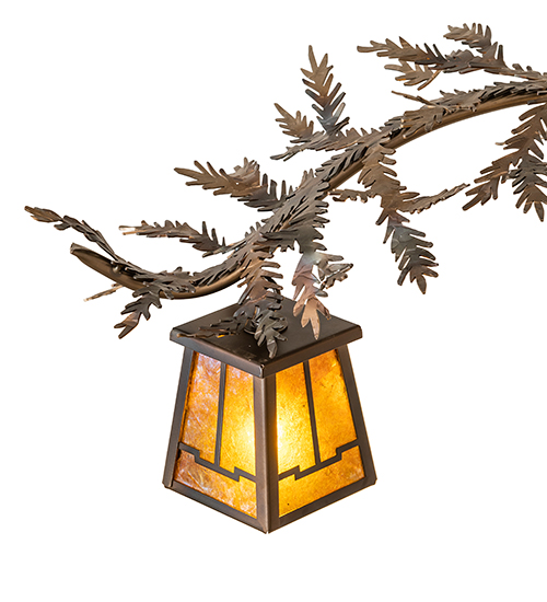 Invite the natural charm of the American woodlands into your home, camp, lodge, or business with this stunning chandelier. 3 Amber Mica lanterns with a handsome Arts & Crafts design adorn Pine Branch shaped accents with matching Pine Needles on this unique, Nature Inspired fixture. This striking ceiling fixture features a Dark Burnished Antique Copper finished Barkerized metal trunk to create a mesmerizing effect. Overall height ranges from 17 to 46 inches as the chain can easily adjust in the field. The Pine Branch Valley View Chandelier is featured in our American-made, American-designed, handmade Nature Inspired Lighting Collection. Manufactured in Yorkville, New York. UL and cUL listed for dry and damp locations.