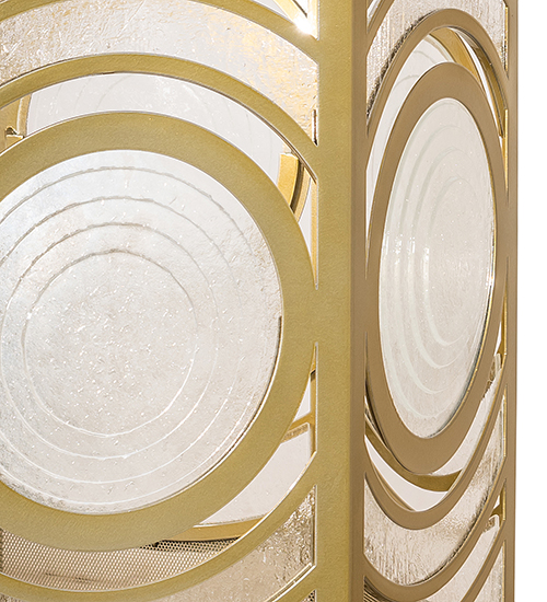 A gracious blend of opulence comes to light with the unique Lighthouse Pendant, which features circular medallions with complementary ringlet designs. This exceptional lighting fixture highlights a stunning, stylish elegance with a frame and hardware in an attractive Buttered Brass finish enhanced with Clear Seed Glass diffusers. This striking pendant is ideal for providing beautiful ambient lighting over in residential and hospitality spaces in St. Augustine, Florida, to Milwaukee, Wisconsin, to San Diego, California. The Lighthouse Pendant is included in our American-made, American-designed, handcrafted Art Deco Lighting Collection and manufactured in Yorkville, New York. UL and cUL listed for dry and damp locations.