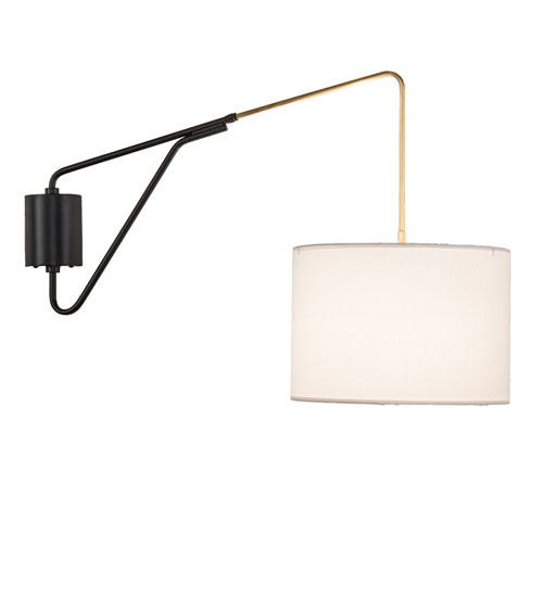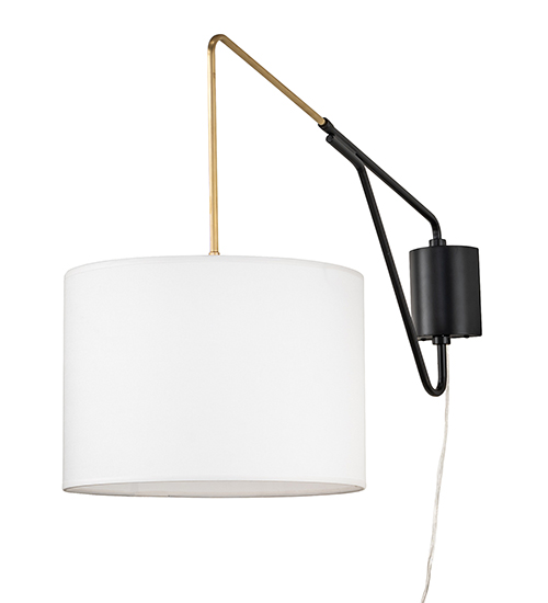 Designed with a curved profile and a clean architectural look. This appealing and versatile swing arm wall sconce reveals a sophisticated aesthetic. A White Textrene shade is complemented with hardware finished in Solar Black with Brushed Brass accents. The 2-prong plug-in luminaire offers a depth ranging from 22.5 to 28 inches from the wall. The Cilindro Swing Arm Wall Sconce is included in our American-made, American-designed, handcrafted Modern Collection. Manufactured in Yorkville, NY. UL and cUL listed for dry locations; however, we do not recommend installing it in spaces that experience a large amount of moisture due to the fabric shade.