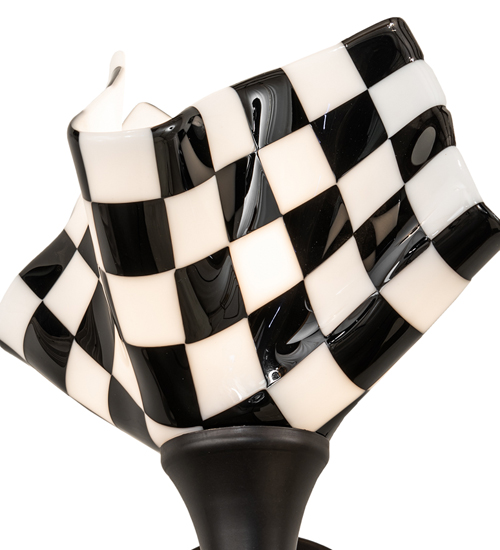 A true winning design. The Black and White checkered racing flag shade of the Handkerchief Grand Prix wall sconce is kiln fired and draped like fabric. Hand-cut glass squares are fused together and then fired again to fall into this flowing fabric-like shape. Handmade by Meyda Craftsmen, this stunning shade with Craftsman Brown hardware and round black cord will start your engines. This compelling lighting design features Fused Art Glass as a uniquely decorative Wall Sconce. It is a true work of art. Ideal for modern and racing-themed restaurants and those that appreciate a work of beauty. Traditional workmanship, high-fire kilns, and original tools are used to fuse art glass in the old world tradition and inspired by famous races from Toronto, Canada, to Indianapolis, Indiana, to Monterey, California. The Handkerchief Grand Prix Wall Sconce is featured in our American-made, American-designed, handcrafted Fused Glass Lighting Collection. UL and cUL listed for dry and damp locations. Each shade is a unique work of art with color variations based on natural ingredients inherent in the glass. Please get in touch with us if color matching is critical when ordering multiple items.