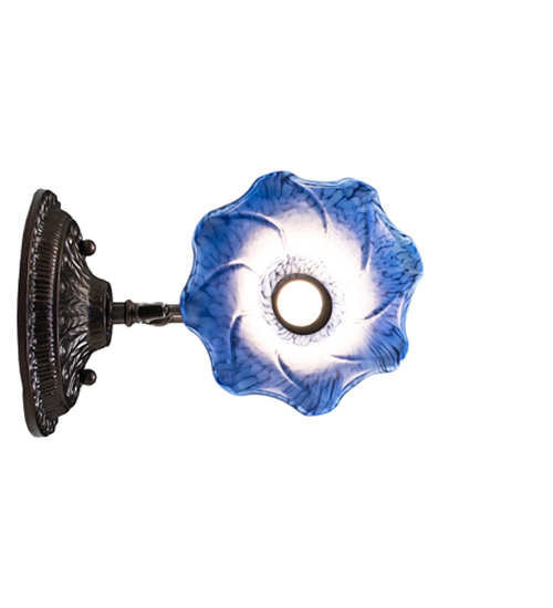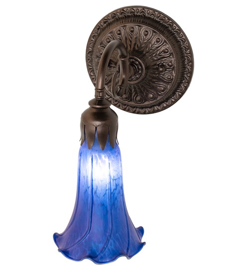 Recreating the famous Tiffany design from the early 1900s. This exquisite wall sconce features a stunning shade created of Blue Favrile Style art glass. An elegant cast metal wallplate embraces the Lily shade with a floral style fitter finished by hand in Mahogany Bronze. The Pond Lily Wall Sconce is included in our American-designed, handcrafted Favrile Glass Lighting Collection. UL and cUL listed for dry and damp locations. Each shade is a unique work of art with color variations based on natural ingredients inherent in the glass. Please contact us if color matching is critical when ordering multiple items.