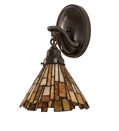 Thinly carved and polished natural Jadestone in earthy tones of Moss Green, Tan, Ivory, and Coral become luminescent in this unique, tile-patterned shade. The stone shade is crafted with the same famous Meyda copperfoil process used to create Tiffany-style stained glass shades. Timeless Bronze finished hardware completes this handsome wall fixture, perfect for illuminating dining areas, living spaces, and corridors in residential, hospitality, and commercial settings. Inspired by locations where the Jade gemstone is mined from Wyoming, to California, to Alaska. The Delta Jadestone Wall Sconce is featured in our American-made, handcrafted Jadestone Collection. UL and cUL listed for dry and damp locations. Each shade is a unique work of art with color variations based on natural ingredients inherent in the Jadestone. Please contact us if color matching is critical when ordering multiple items.