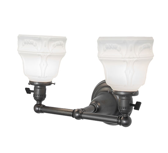 Reminiscent of lighting fixtures from the early 1900s. The Revival Wall Sconce features two shades of White blown glass with an elegant Wreath and Garland motif- an authentic historic look to complement any room or space. The shades are embraced by hardware and an authentic traditional paddle switch designed and crafted with the exact details of old-world artisanship. This Brass fixture features a handsome Black finish and is ideal for illuminating walls in corridors and other traditional settings in residential, commercial, and hospitality spaces. The Revival Chelsea Garland 2 Light Wall Sconce is included in our American-made, American-designed Revival Lighting Collection and manufactured in Yorkville, New York. The fixture is UL and cUL listed for dry and damp locations.