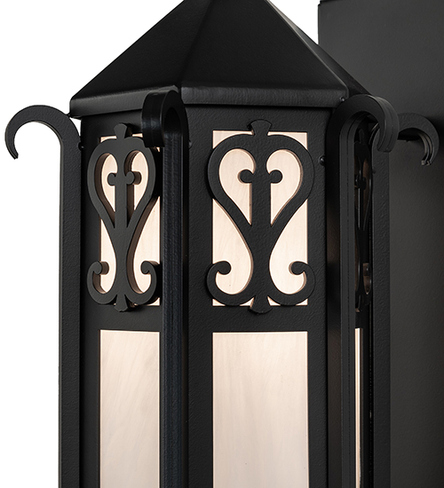 Hand-forged Iron Metalwork creates a rich, luxurious look for Caprice. This high-styled wall fixture is crafted with a Fleshtone Idalight lens and stainless steel that is finished with a Solar Black powder coat to withstand direct sunlight and exposure in most geographic climates. This sconce is ideal to complement a variety of architectural styles for today's exteriors and interiors. This luxurious fixture is perfect for illuminating interiors and exteriors in residential, hospitality, and commercial spaces throughout the US, including Arlington, Virginia, Omaha, Nebraska, and Sacramento, California. The Caprice Wall Sconce is included in our American-made, American-designed, handmade Traditional Lighting Collection and manufactured in Yorkville, New York. UL & cUL listed for dry, damp, and wet locations.