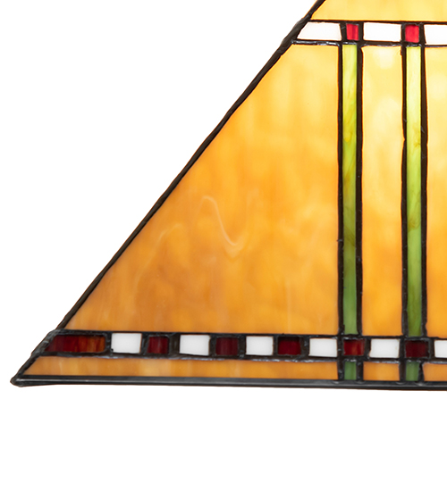 With a love of geometric forms, this lighting design interprets organic objects into simplified lines. The Prairie Corn pendant features a shade with rows of Chili Red and Wheat kernels and stalks of Bronzed Jade against a Maize Gold background. The art glass shade is created using the famous Meyda Tiffany copperfoil construction and enhanced with a Mahogany Bronze finish. The Prairie Corn Pendant is featured in our American-designed handcrafted Mission Lighting Collection. UL and cUL listed for dry and damp locations. Each shade is a unique work of art with color variations based on natural ingredients inherent in the glass.