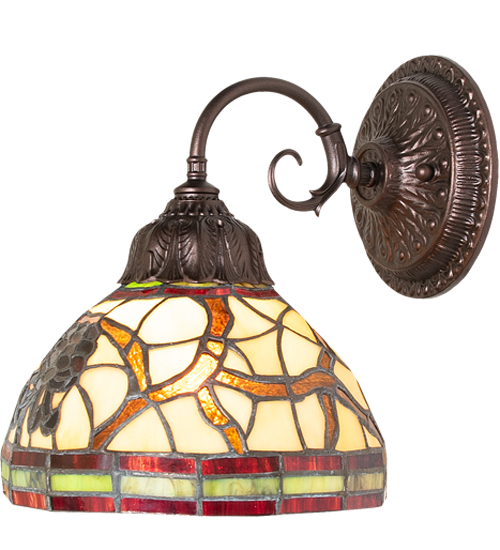 This stunning Rustic art glass design features the iconic Pinecone, one of Mother Nature's most compelling organic symbols, which offers natural elegance and represents the evolution of human enlightenment. Exquisite Burgundy and Leaf Green bands edge this woodland shade, highlighting Light Brown pinecones and Golden Sun branches on a Beige art glass shade. The beautiful shade is created using the famous Meyda Tiffany copperfoil construction technique and complemented with an elegant Mahogany Bronze finished cast metal wall plate. The fixture is inspired by Pine Trees among renowned American forests, including the Deschutes National Forest in central Oregon, the Nevada-Sierra National Forest, and the White Mountain Forest, in New Hampshire. The Pinecone Wall Sconce is included in our American-designed, handcrafted Nature Inspired Stained Glass Collection. UL and cUL listed for dry and damp locations. Each shade is a unique work of art with color variations based on natural ingredients inherent in the glass.