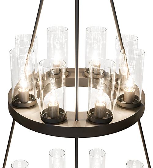 Blending an elegant style with a classic, distinguished look... The Loxley chandelier is custom-crafted with 20 Clear Glass Cylindre elements on two tiers and enhanced with an Oil Rubbed Bronze finish. The overall height ranges from 71 to 130 inches, as the chain can be adjusted in the field to meet your exact requirements. This luxurious custom fixture is ideal for illuminating ballrooms, dining tables, lobbies, entryways, and other residential, hospitality, and commercial spaces throughout the US, including Arlington, Virginia, Omaha, Nebraska, and Sacramento, California. The Loxley Two Tier Chandelier is included in our American-made, American-designed, handcrafted Contemporary Lighting Collection. This fixture is manufactured in Yorkville, New York. UL and cUL listed for dry and damp locations.