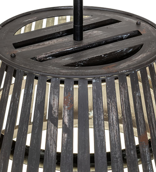 Elegant charm blends with rustic beauty. This unique ceiling pendant is inspired by vintage peach baskets traditionally bound with wooden staves and used for gathering peaches, apples, and other fruits. Not just a popular fruit, the peach symbolizes immortality and long life. The pendant features the shade in a Weathered Wicker finish and is perfect in entryways and lobbies in structures from Wells, Maine, and Columbia County, New York, to Athens, Georgia. This fixture is illuminated with integral LEDs for long life and energy savings. The Peach Basket Pendant is included in our American-made, American-designed, handcrafted Vintage Lighting Collection and manufactured in Yorkville, New York. UL & cUL listed for dry and damp locations. These fixtures are featured in the highly popular Chick-fil-A restaurants across the United States.