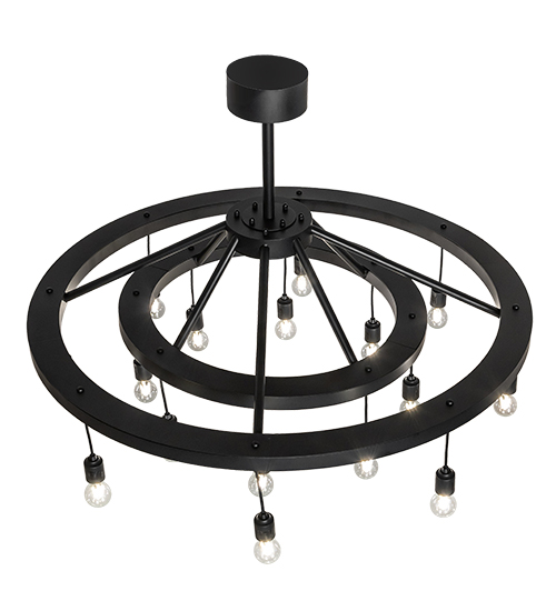 Merging a modern look with traditional bulbs, Donner proves to be a stylish show-stopper. Two sturdy Solar Black rings appear to rotate on their access while embracing 16 Edison-style lamps with Black cords at various heights. The chandelier is perfect for making a dramatic design statement in entryways and living areas, homes, and commercial spaces from Hialeah, Florida, to Garland, Texas, to Glendale, Arizona. The Donner 16 Light Chandelier is featured in our American-made, American-designed, handcrafted Modern Lighting Collection, which is manufactured in Yorkville, New York. UL and cUL listed for dry and damp locations.