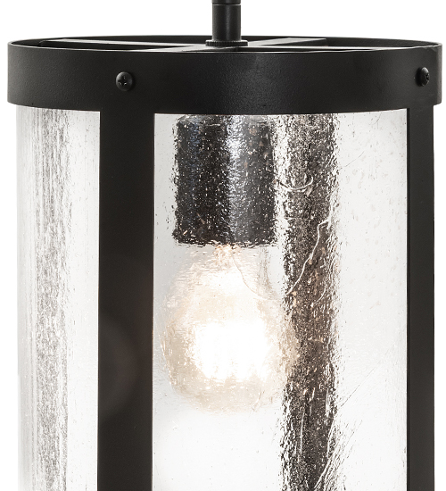 A minimalist cylindrical style that delivers beautiful ambient illumination. This handsome Villa mini pendant is designed with a Clear Seeded Glass lens that reveals an Edison-style bulb and is complemented by hardware featuring a stunning Textured Black finish. Place the mini pendant in groups to make a beautiful design statement over a billiard table, kitchen island, bar, counter, or table. The Villa Mini Pendant is included in our American-made, American-designed, handcrafted Transitional Lighting Collection and is manufactured in Yorkville, New York. The fixture is UL and cUL listed for dry and damp locations.