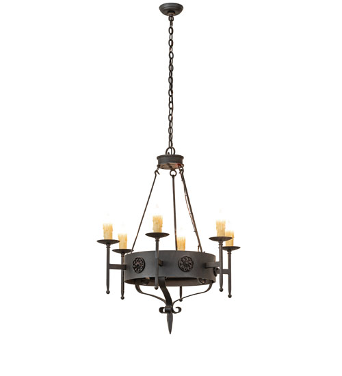 Lorenzo combines a rich charm and artistic look in this elegant lighting design. Floral medallions accentuate this stunning ceiling fixture, which is adorned with six exquisite Ivory faux candlelights perched on bobeches. The fixture is enhanced with sturdy hardware in a Chestnut finish. It is ideal for entryways, dining areas, lobbies, and other rooms in various residential and commercial settings. The overall height ranges from 40 to 111 inches, as the chain length can be easily adjusted on location to accommodate your specific lighting application needs. The Lorenzo 6 Light Chandelier is included in our American-made, American-designed, handcrafted Gothic Lighting Collection and manufactured in Yorkville, New York. The fixture is UL and cUL listed for dry and damp locations.