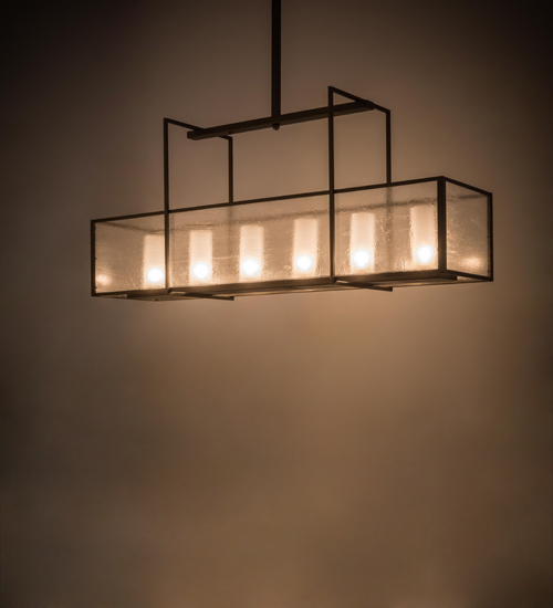 A sleek architectural structure in light. The Nelson oblong pendant is designed with a Clear Seeded Glass shade, which surrounds a smaller White Glass oblong diffuser. The fixture is complemented by an elaborately structured frame featured in a Timeless Bronze. The oblong fixture is ideal for illuminating billiard tables, kitchen islands, counters, bars, reception areas, and other spaces from Boston, Massachusetts, to Houston, Texas. The Nelson Oblong Pendant is included in our American-made, American-designed Modern Architectural Collection and manufactured in Yorkville, NY. It is UL and cUL listed for dry and damp locations.