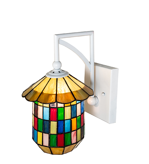 Meyda Co-Founder Meyer Cohen created this charming lighting design on the front porch of his summer studio in Old Forge in Upstate New York. The Meyer Lantern was designed with a cornucopia of Blues, Greens, Yellows, and Reds in various stained glass tiles and is enhanced with a White powder coat finish. This wall sconce can be seen in doorways, patios, and dining areas adorning camps and vacation homes throughout the Adirondack Mountains, from Lake George to Lake Placid, to Inlet. The shade is created using the famous Meyda Tiffany copperfoil construction technique. The Meyer Lantern Wall Sconce is included in our American-designed, handcrafted Meyer Lantern Collection. UL and cUL listed for dry and damp locations. No two art glass shades will be the same; their individuality can be as remarkably unique as their personality.