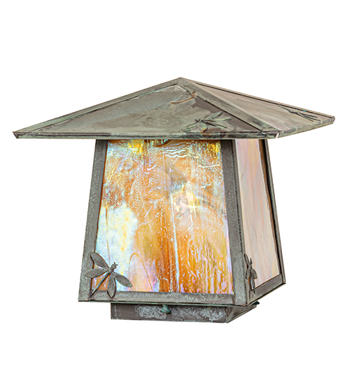 Delicately etched Lotus Leaves appear to fall gracefully in the air while Dragonfly metal accents adorn this dramatic Solid Brass deck light. This exquisite Nature-inspired Deck Light combines handsome Craftsman styling with an elegant, luxurious design. It features a Beige Iridescent Glass diffuser complemented by a Craftsman Verdigris finish. Constructed of Solid Brass, this lighting fixture is handcrafted for durability and longevity, resisting rust and corrosion, making it ideal for both exterior and interior applications. The fixture is suitable for placement on decks and patios in timber homes, modern farmhouses, and other spaces. The Stillwater Lotus Leaf and Dragonfly Deck Light is included in our American-made, American-designed, handcrafted Craftsman Signature Series and manufactured in Yorkville, New York. UL and cUL listed for dry, damp, and wet locations. Our Build Your Own Craftsman Signature Series features unlimited combinations of styles. The collection is called Build Your Own because it is fully configurable and customizable from size and design to finish and lens color. Marine-grade, solid brass, or copper raw materials are utilized to ensure items from the Craftsman Signature Series of outdoor and indoor lighting will stand the test of time, as these premium metals are impervious to most types of oxidation. Hand-applied Patina finishes on brass and copper are sealed with a clear varnish and over time, may require gentle maintenance, such as wax, to delay or reverse the natural living finish attributes indicative of this finishing process. Patina finishes on brass and copper provide strong resistance to fading from sun exposure, will not chip or crack, and will not rust like a steel-framed item in the same conditions. Choose from a variety of style options, or send us your concept today! Call today to learn how to use the configuration tool available on our website to generate an item number instantly.
