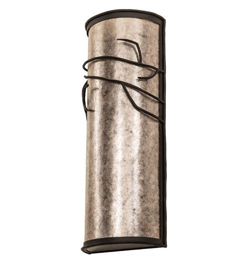 This attractive lighting design features silhouetted tree branches that appear like a mid-winter shadow from a crisp full moon and mesmerize with a striking look inspired by Mother Nature. The stunning Silver Mica lens is complemented with Crystal Idalight top and bottom diffusers. Two lamps bring out the beauty of the mica while two additional lamps provide upward ambient illumination and downward functional lighting. The lamps benefit from separate circuits to give you precise dimming control over three layers of light to create the perfect ambiance in the space. The frame and hardware featured in Oil Rubbed Bronze finish. This gorgeous wall sconce perfectly complements any residential or commercial environment, especially in hallways and dining areas in timber frame homes, camps, and restaurant settings. A matching Branches Right Wall Sconce, is also available to enhance any space. The Branches Left Wall Sconces are included in our American-made, American-designed, handcrafted Nature Inspired Collection and manufactured in Yorkville, New York. UL and cUL listed for dry and damp locations.