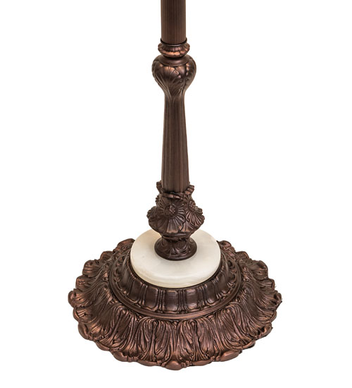 As distinctive as beautiful Peacock fanning feathers in the wild, no two shades will ever be the same as their individuality can be as remarkably unique as their personality. This artistic creation utilizes swirling opalescent stained glass background combinations, including Beige, Yellow Pinks, Golden Greens, Ivories, Bluish Whites, Turquoise Blues, and Olive and Spring Greens. The eye of the plumage design reveals purple, Pastel Blues, Teals, Cobalt, and ivory, accented with Blue and Purple colored jewels. Individual pieces of glass are hand-cut and wrapped using the famous Meyda Tiffany copperfoil construction technique. The floor lamp is enhanced with an elegant cast metal base hand-finished in Mahogany Bronze. Place this table lamp in picture windows, living areas, and other residential, commercial, and hospitality spaces to create a dramatic design statement. The Tiffany Jeweled Peacock Floor Lamp is included in our American-designed, handcrafted Tiffany Reproduction Collection. UL and cUL listed for dry locations. Each shade is a unique work of art with color variations based on natural ingredients inherent in the glass.