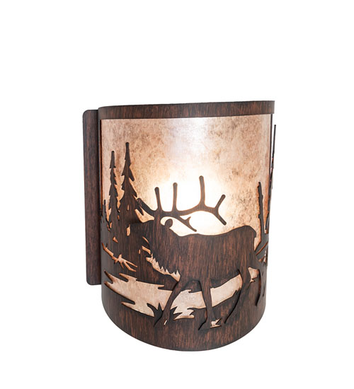 The iconic Elk wanders by a woodland lake in the beautiful afternoon sun, radiating beautiful ambient light through a Silver Mica shade. The fixture is enhanced with a Driftwood Brown finish. To complement this wall fixture, see the matching right wall sconce, model 277543. The Elk Left Wall Sconce is included in our American-made, American-designed, handcrafted Wildlife Collection, which is manufactured in Yorkville, New York. UL and cUL listed for dry and damp locations. Upstate New York's adventurous playland, known as the Adirondack Mountains, with its many breathtaking forests, lakes, and rivers, is the spiritual birthplace of Meyda and inspires our rustic-themed mica collections.