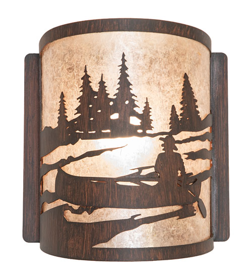 Relax and enjoy the feeling of tranquility as a man gently paddles his Canoe on a Lake in the woodlands on this Nature-inspired light fixture. The wall sconce features a Silver Mica lens and is enhanced with a Driftwood Brown finish. This fixture is perfect as a decorative wall sconce in hallways and dining spaces in homes, lodges, and other hospitality settings. Please see 277550, the complementary 8" Wide Canoe At Lake Right Wall Sconce. The Canoe At Lake Right Wall Sconce is featured in our American-made, American-designed, handcrafted Sportsman Collection, which is manufactured in Yorkville, New York. UL and cUL listed for dry and damp locations. Upstate New York's adventurous playland, known as the Adirondack Mountains, with its many breathtaking forests, lakes, and rivers, is the spiritual birthplace of Meyda and inspires our rustic-themed collections. Call us today, and we will create a lighting fixture for your next project.