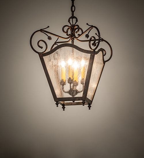 Expert craftsmanship and charming beauty come to life with a stunning classic lantern design that entices. The exquisite pendant features a Clear Glass lens revealing four Ivory faux candlelights that illuminate beautifully from within. The lantern is enhanced with a frame, hardware, and exquisite scrollwork offered in durable Wrought Iron. The overall height of the fixture ranges from 30 to 127 inches as the chain easily adjusts on location to meet your lighting needs. The fixture is ideal for placement in dining areas and entryways in homes and restaurants. The Terena Pendant is included in our American-made, American-designed, handcrafted Traditional Lighting Collection. It is manufactured in Yorkville, New York. The fixture is UL & cUL listed for dry and damp locations.